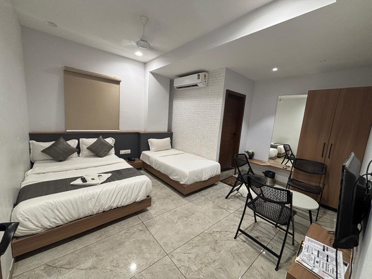 Each room features silent, energy-efficient split air conditioning systems with individual temperature control.